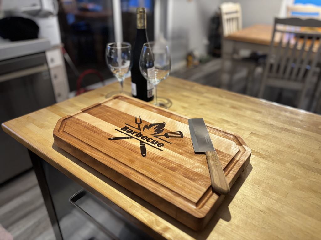 Cette planche à découper en bois de merisier est le choix idéal pour votre cuisine.